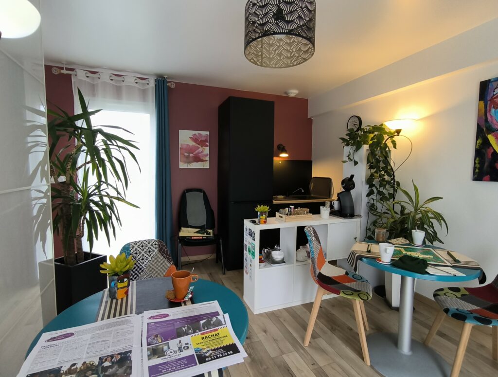 Cet espace est dédié au service du petit-déjeuner mais vous pouvez y passer de très bons moments toute la journée…