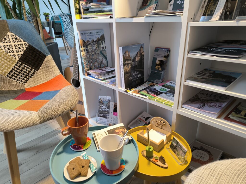 Un petit coin salon vous invite à consulter la documentation de la région ou à choisir un livre.